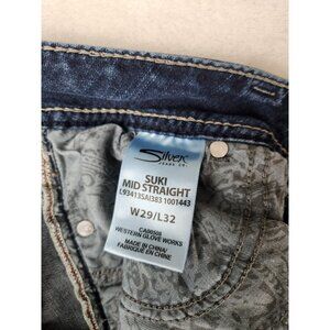 Silver Suki Straight Blue Jeans Womens Western Glove Works Size 29 X 32. Measures 28x29 little wear on bottom heels area