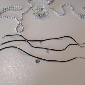 Silver Sun Moon Star Velvet Stacking Choker Set