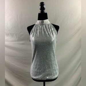 Silver Tie Back Sequin Halter Top