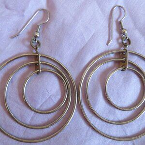 Silver Tone 3-Hoop Pierced Earrings 7 cm L (K727)