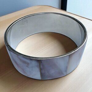 Silver Tone Bangle Bracelet Grey Blue Abalone Shells Panels