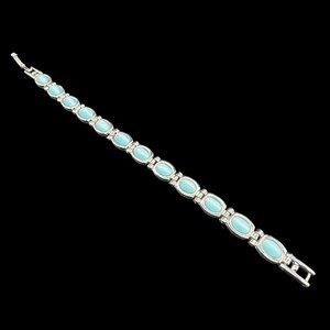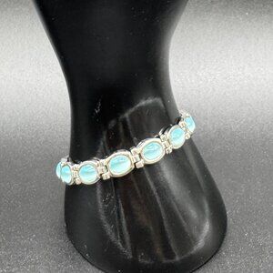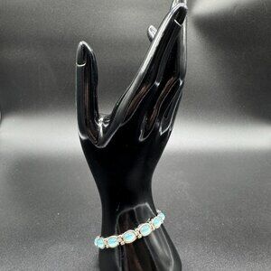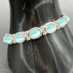 Silver Tone Bracelet Blue Cat's Eye Stones Cabochons 7 inches