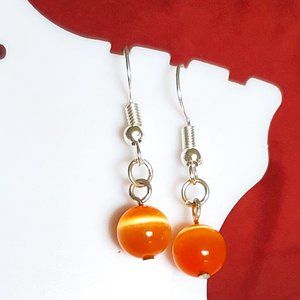Silver Tone Hook Orange Cat's Eye Bead Earrings