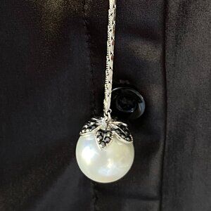 Fifth Avenue collection Gorgeous Long silver tone rhodium plated snake chain necklace with smoky crystal leaf's & petal top of faux pearl. Falls 20" from neck. See last photo for pin head size scratch on pearl, not noticeable unless up close.