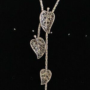 Silver Tone Long Crystal Leaves Pearl Drop Necklace