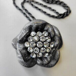featuring a lovely flower with textured layered petals and 19 clear round rhinestones at the centre.