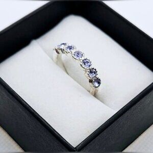 Silver Tone Simulant Tanzanite Band Fashion Ring
