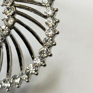 It features a sparkling cluster of clear, crystal rhinestones dotting the edges in silver tone metal setting.