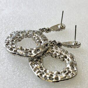 Silver Tone rhinestone Round Circular Earrings