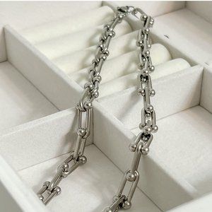 Silver Toned Chunky Chain Necklace Thick Silver Chain Necklace U Chain Necklace