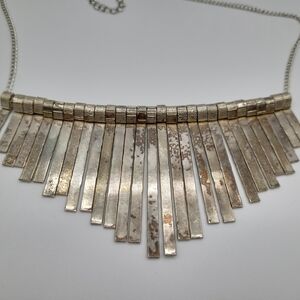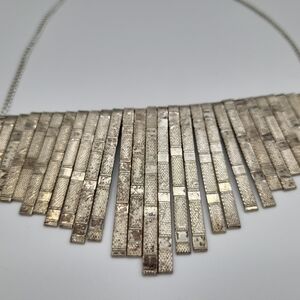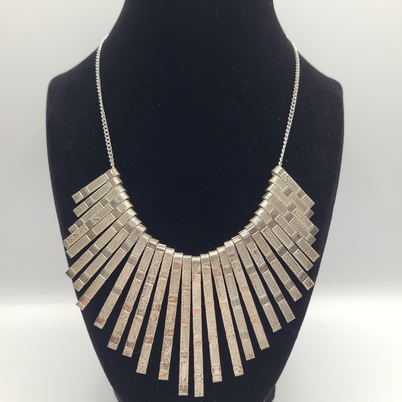 This stunning silver tone necklace adds a touch of elegance to any outfit. Perfect for any occasion.