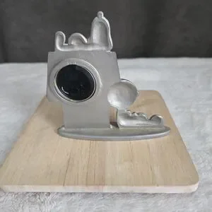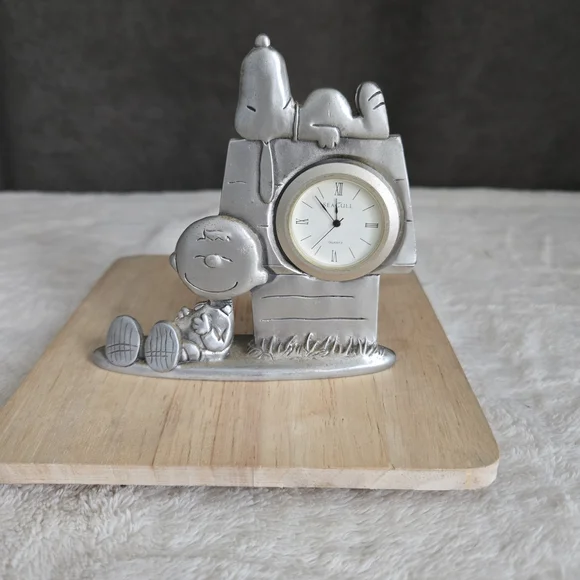 Enhance your home with this vintage snoopy pewter clock decor. Its sleek design adds a modern touch to any room. needs a new battery.