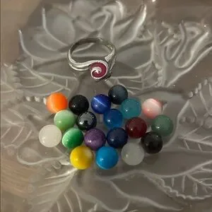Delicate silver wave ring featuring an interchangeable ball to coordinate with your outfit/mood/event!