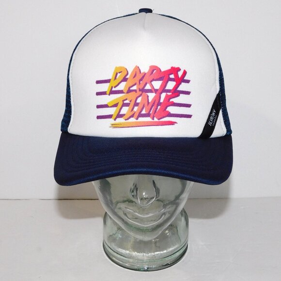 This Silver Wave SLVR WV Unisex Snapback PARTY TIME White Blue retro look Trucker Hat Cap is in great clean bright condition. Unisex adjustable snapback. Spot clean only
