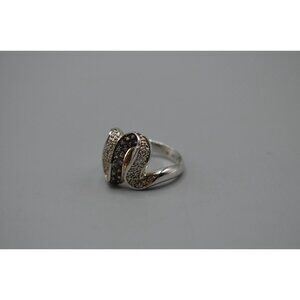 This stunning statement ring made in a 925 silver allow is shaped in an interesting tight wave pattern with some sort of black inlay worked into the design, as well as a number of very tiny stones that could be marcasite. It is stamped 925 ALLOY and there is another small stamp that looks like a lion, which would make it a British hallmark (probably London), but I can't be 100% certain that it is a lion stamp.