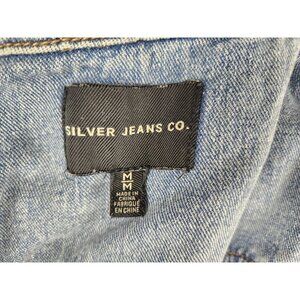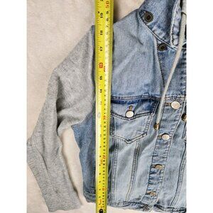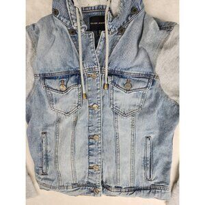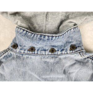 Silver Women's Denim Jacket With Hood Size Medium Trucker Strech