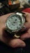 Elegant silver watch with crystal accents. Features a black strap and a sleek design. will need a battery. by Victoria Wielk