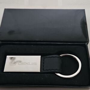 Elegant keychain in sleek leather, silver and black. Perfect for adding a touch of luxury to your keys.