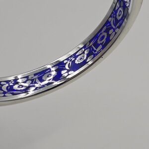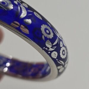Silver and Blue Bangle Bracelet Floral Design Boho Statement Jewelry