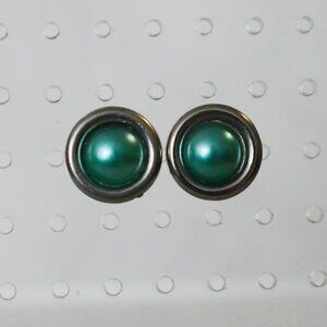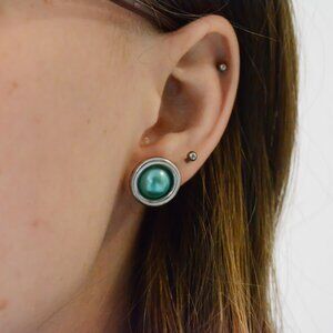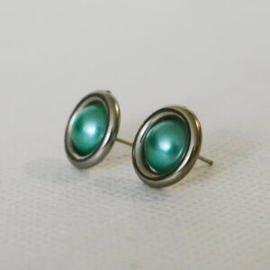Silver and Dark Teal Stud Earrings