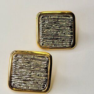 Dazzling Textured Silver tone Earrings framed in a gold tone