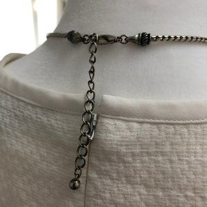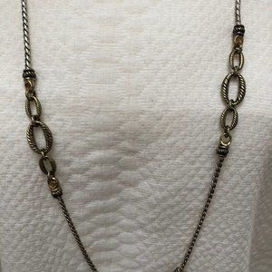 Silver and Gold Tone Long Necklace. A standout piece and in excellent condition. The total length of the necklace is 37 inches plus an additional 3 inch extender.