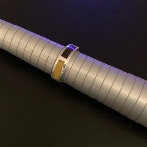 Elegant silver and gold two-tone amber ring. Perfect for any occasion. Size 101/4