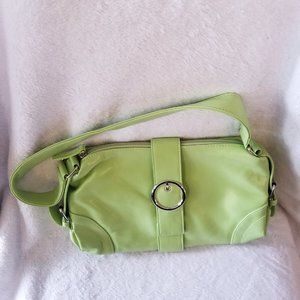 This mini bag combines a sleek silver and vibrant green color palette, offering a chic and modern accessory for any occasion. Its structured design and smooth finish make it a standout piece, perfect for adding a touch of elegance to your ensemble. The bag's compact size and stylish shoulder strap ensure both functionality and fashion-forward appeal.