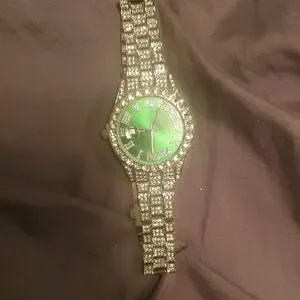 Silver and Green Rhinestone Watch