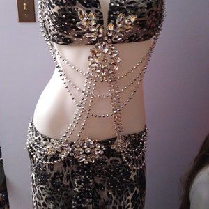 Rhinestone accents on the bra and in the skirt
