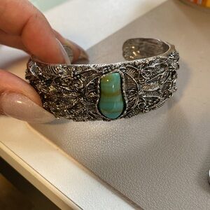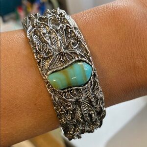 Elegant silver bracelet featuring a striking turquoise stone. Perfect for adding a touch of sophistication to any outfit.
