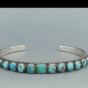 Silver and turquoise coloured stone bangle bracelet - OS - new