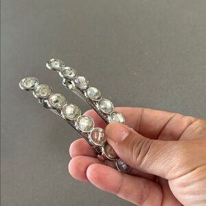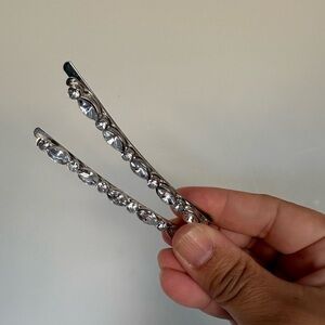 Elegant silver hair clips with sparkling rhinestones. Perfect for adding a touch of glamour.