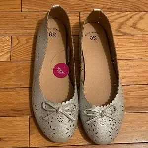Sliver flats. These are about size 9 women’s Photo shows about 10 inches in length