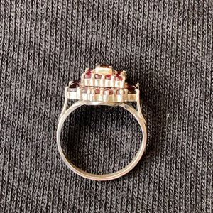 The garnet stones are set over sterling silver. The ring is from Prague.