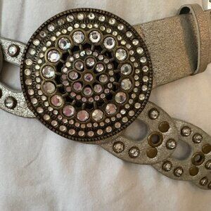 Vintage silver leather embellished belt. Gorgeous over black...Gently worn...