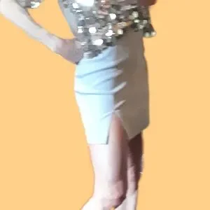 Vintage silver mini skirt with sexy front slit and zipper back. Fitted but has stretch to fit eveey curve. Pristine