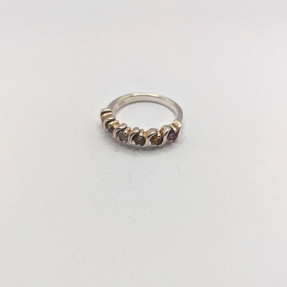 Vintage silver ring with stones of several different colours. Nice assortment of light green, orange, pink and purple.