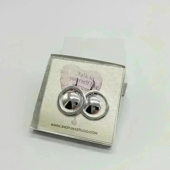 Silver nine west futuristic dangle circle earrings