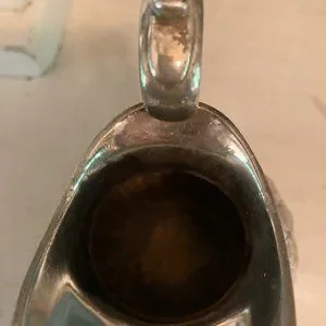 Beautiful silver pitcher. Unsure of marks. Likely silver plate but quite solid and heavy. Creamer-sized at approx 3.5" high