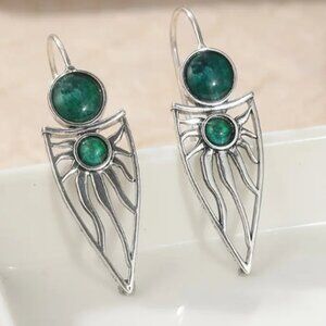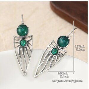Silver plated Boho Earrings with Green Blue accents - NEW