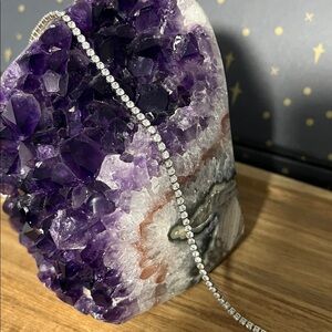 Silver plated and CZ tennis necklace. 15.5in long + 2in extension 2mm Cz