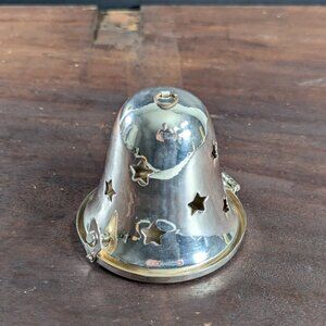 Silver plated Christmas bell pomander, electric tealight holder tree decoration