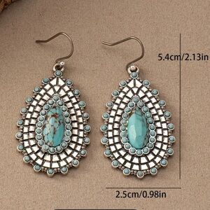 Silver plated tear drop earrings - Turquoise stones & resin - western boho
