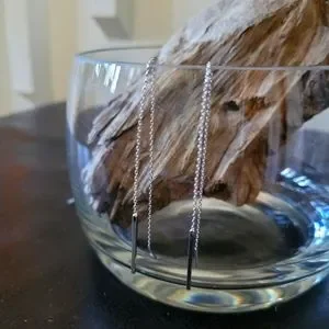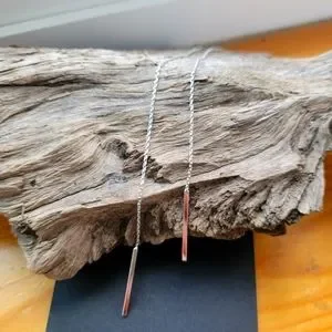 Set of Silver rectangular bar shaped threader dangle earrings. Brand new, new worn jewelery.