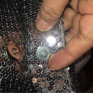 This silver shoulder bag features a shiny sequined material that creates a captivating sparkle. Its rectangular shape and thin strap make it ideal for evening wear, adding a stylish touch to any outfit. Perfect for those looking to elevate their accessory game with a touch of glamour. The shoulder bag lays flat and fold over to snap to half its size although there is a zipper at top. It really is a cute flashy bag and would be great for clubbing, an evening out, wedding , grad and more- This purse looks like it has not been used or gently used but check pics over.