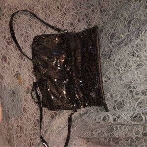 Silver sequin Shoulder Bag with Sparkly Texture and Thin Strap- like new