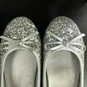 Kids size 2 sparkly silver sequin flats in perfect condition - they’ve been worn out once so the bottoms are a little dirty - I will make sure to clean them before the shipment!