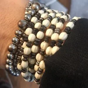 Silver stack three bracelets with white silver stack