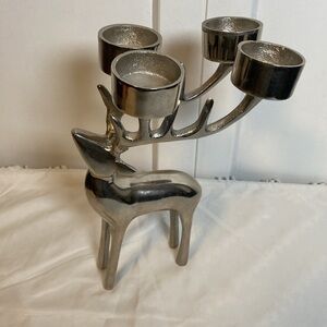 Silver tone reindeer decoration. Holds four tea lights